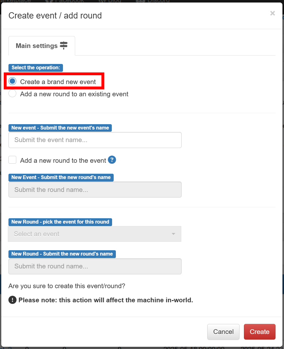 - Event rounds: when the machine is associated to an event round having a specific start and/or end time and the player pays the machine outside the working period, then a refund of the amount paid is performed.